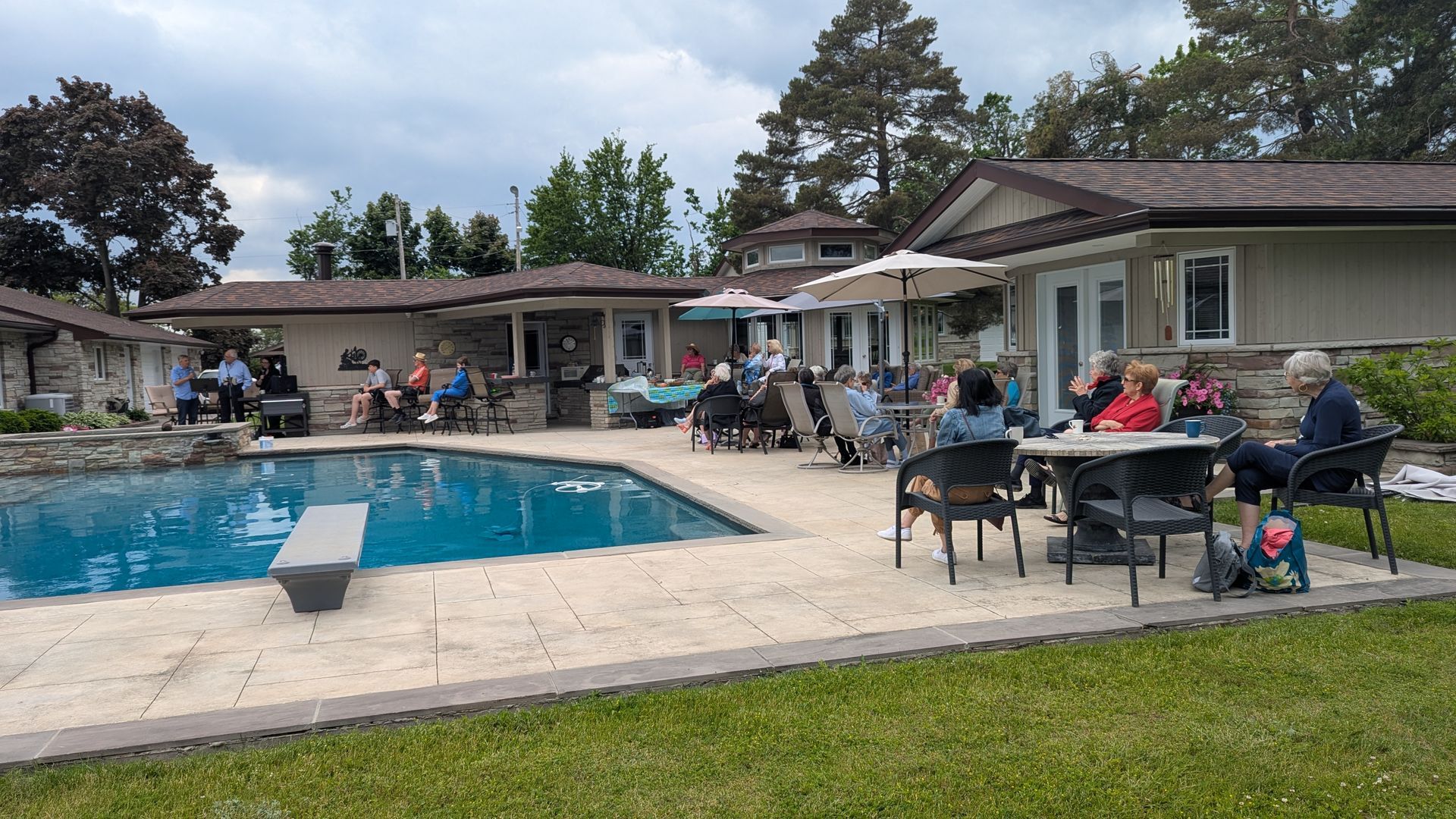 Our June UCW meeting was a wonderful Picnic/Pool Party at our President's home. We enjoyed Hot dogs, beverages and delicious salads and desserts. Daryl, Julie and Ray entertained us with many toons. We engaged in some hand clapping, toe tapping and dancing to the tunes. Many thanks to our hostess Jewell for a fun outing and great send-off to summer.