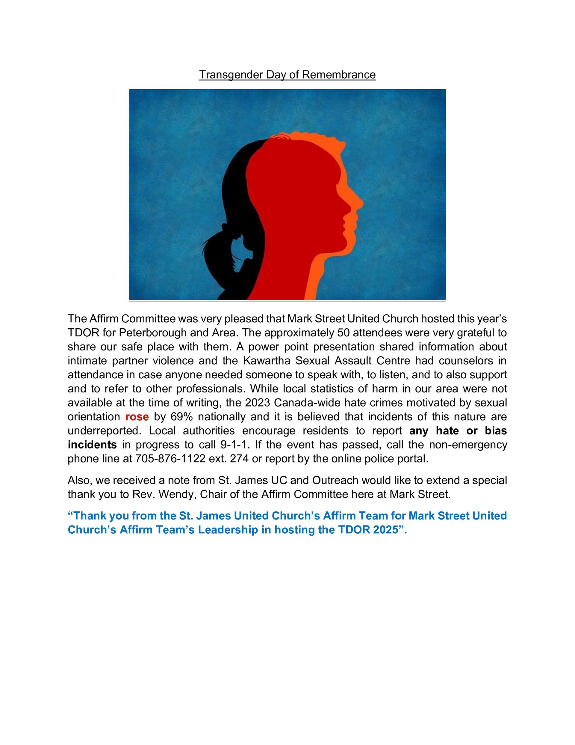As an Affirm Committee we would also welcome any suggestions for how we might better fulfil our Mission to be Public, Intentional and Explicit. If you have ideas or suggestions please speak to a member of the Affirm Committee ( Rev. Ned Wells, Karin D., Mavis S. and Wendy B.) We would also welcome any new members who would like to join us.