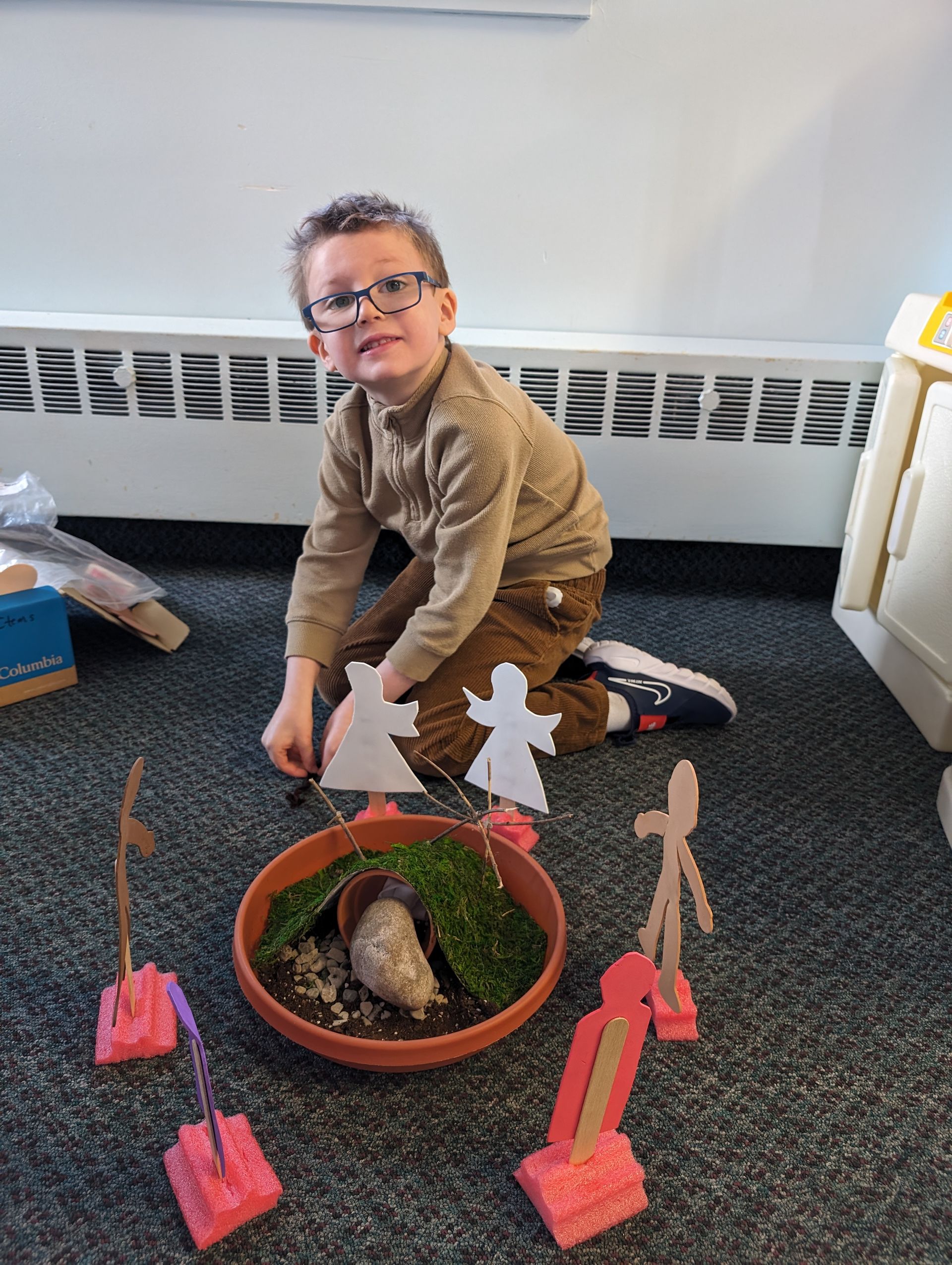 In John 21:1-19 we heard the story about Jesus asking Peter three times, "Do you love me?" and Peter replying, "Yes, you know I love you." Jesus then said, "Feed my sheep". We did some fishing and listened to the story, "The Friend Who Forgives, written and read by Dan DeWitt, illustrated by Catalina Echeverri.